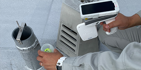 手作業で行われていた竣工時の排水管通球試験にRFIDを活用したシステムを開発し、業務時間の約3割を削減しました。 -