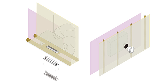 鉄道騒音などが大きい立地で消音スリーブ以上の性能が必要な時に、換気性能を確保しつつ外部から音の侵入を抑制する製品です。 -