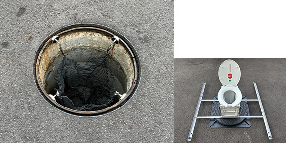 マンホールトイレ用「汚物捕捉装置」