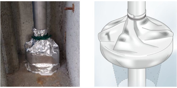 給水管改修時に行うスリーブの穴埋め作業を、下階フロア作業は不要で、上階フロアのみの作業を可能にした工法です。 -