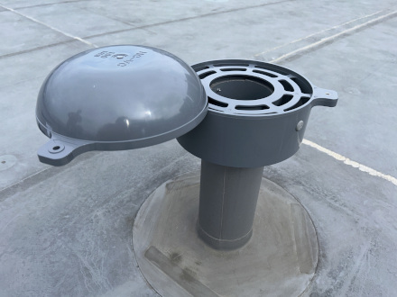 耐候性・耐衝撃性に優れ軽量化と施工性、配管洗浄が容易にオール樹脂製屋上通気システム