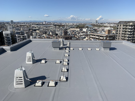 2006年より屋上通気システムにGRC製のRハット(屋上用)及びBハット(ルーフバルコニー用)を標準採用としていましたが、CO2削減・施工性・配管洗浄容易性・避雷針設備の簡略化を目的に、オール樹脂製屋上通気システムHC-VC(屋上用)・HC-VCR(ルーフバルコニー用)を開発しました。