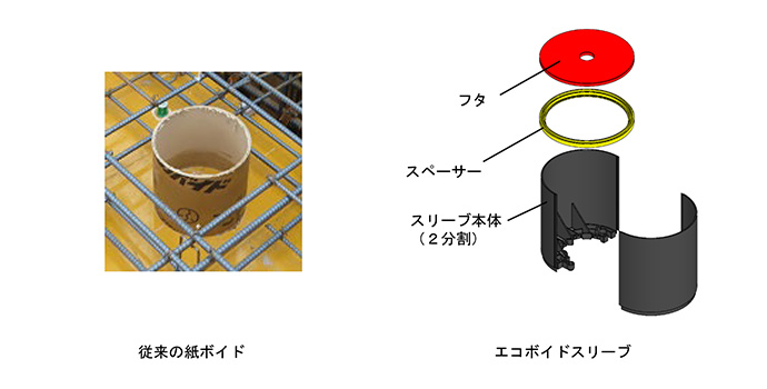 設備用の床スリーブに脱型作業が容易で再利用可能なエコボイドボイドスリーブを開発しました。