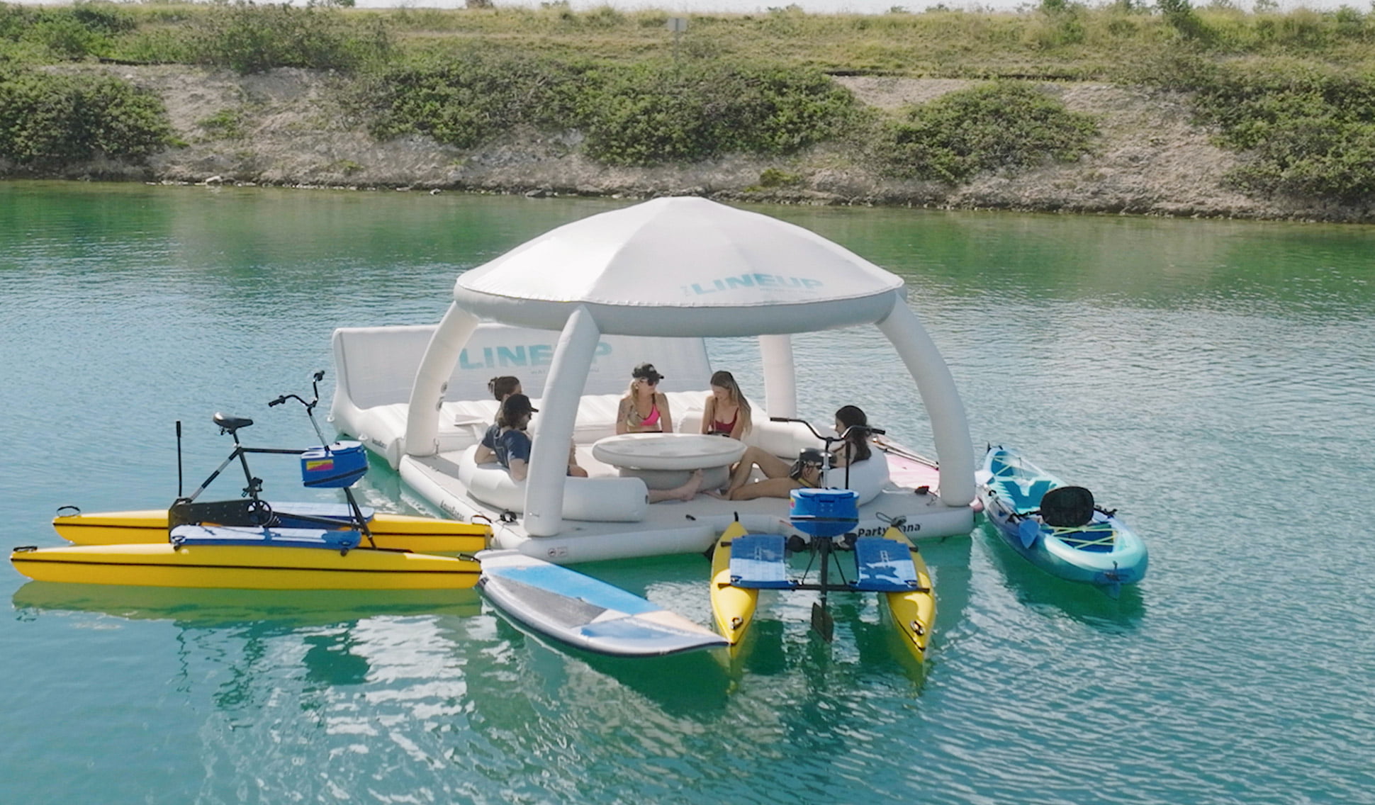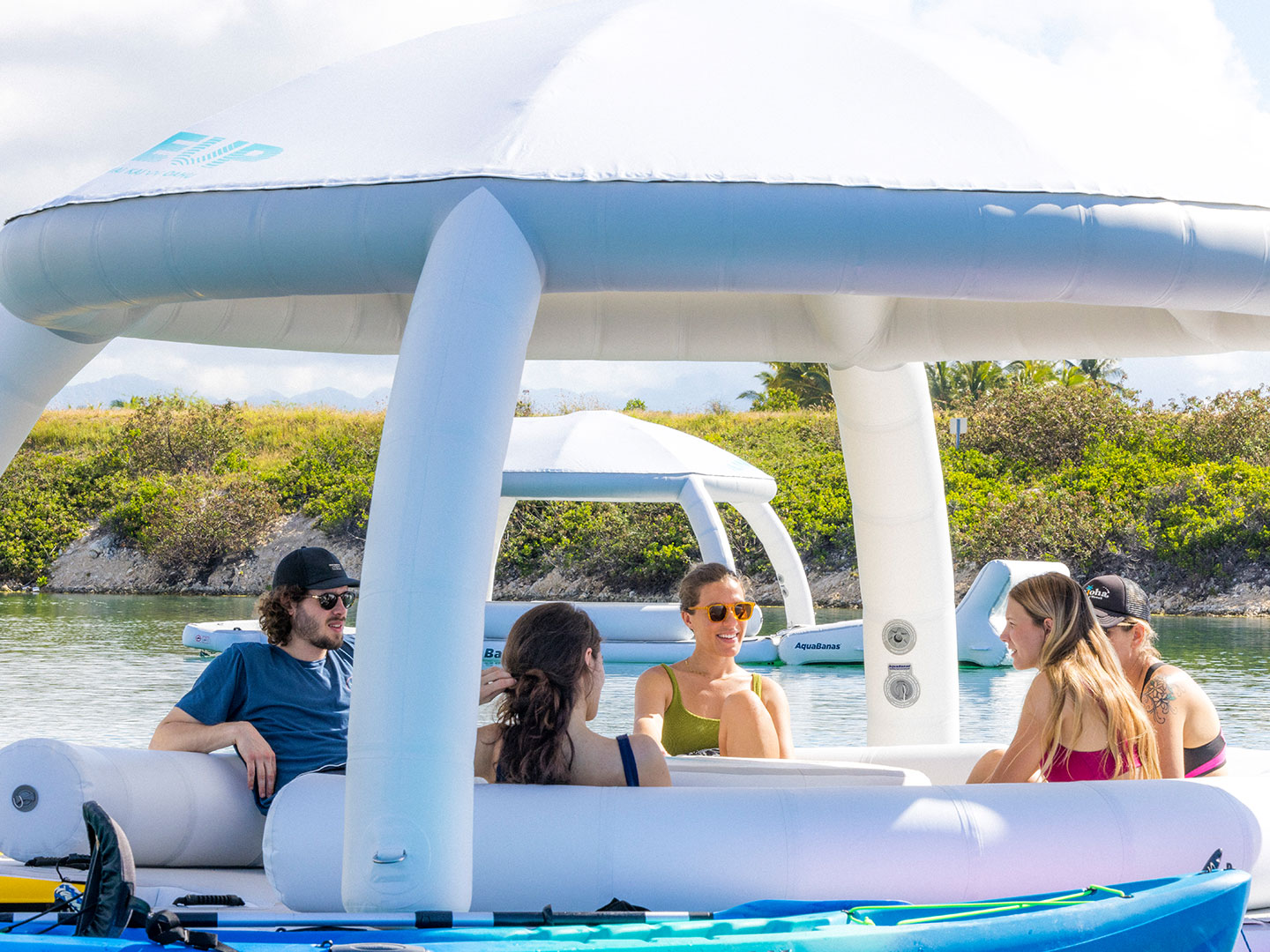 アクアバナ水上コテージ・アクアバナには、2つのサイズがあります。最大6名まで収容可能なパーティーバナと、最大8名まで収容可能なピクニックバナです。2時間単位で予約ができます。ラグーンをカヤックやパドルボードなどで好きなように巡り、休憩したり、ランチを食べたり、友だちと一緒にプライベートな水上パーティーも可能です。