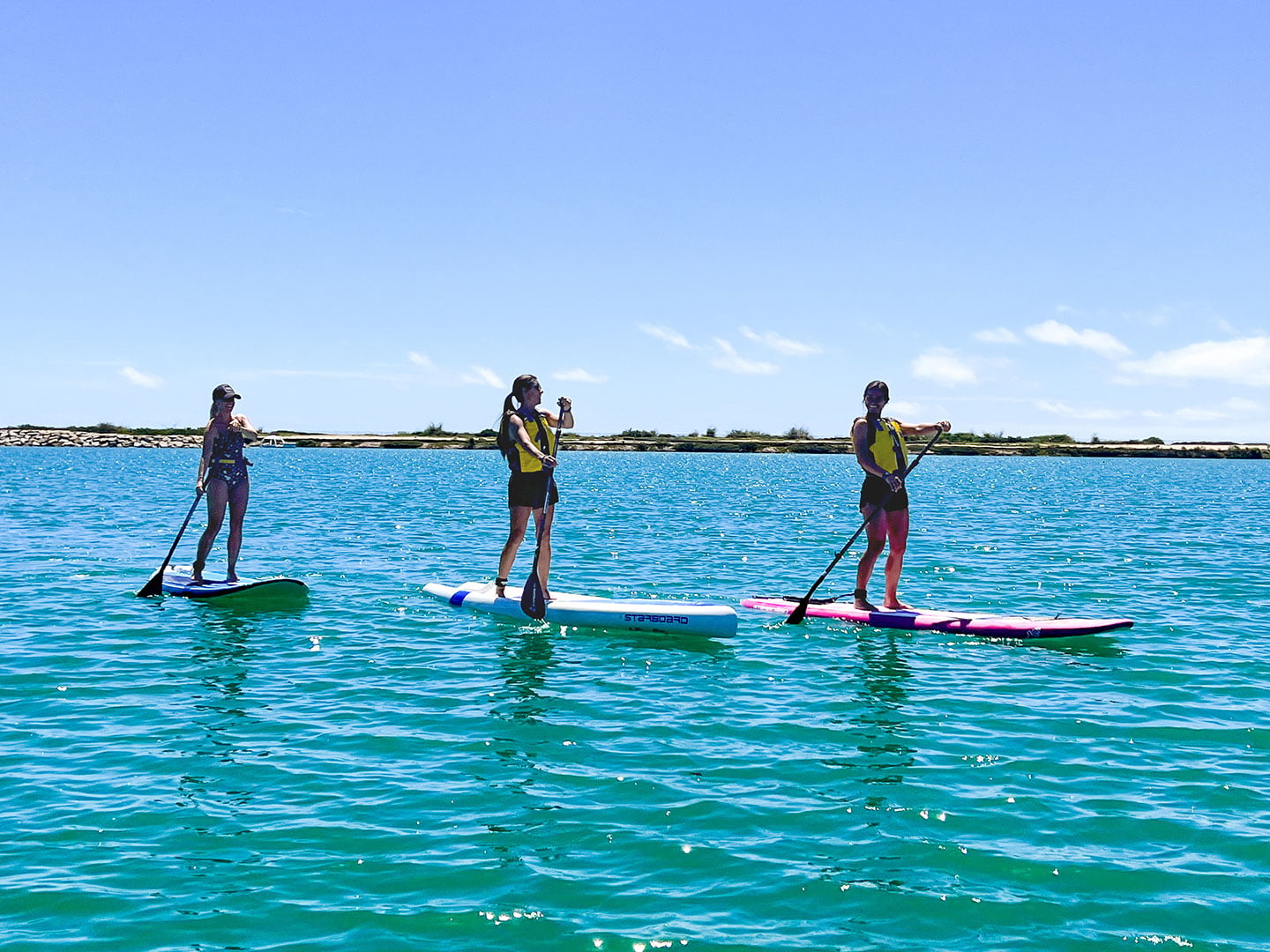 スタンド・アップ・パドルボード最新のスタンド・アップ・パドルボードで、ラグーンを自由にパドリングして楽しめます。安定して浮かぶ大型の構造で、スタンダード型のほかに膨らませることでさらに耐久性を高めたモデルも選べます。